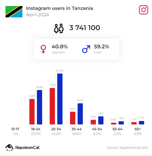 Instagram accounts in Tanzania as per April 2024